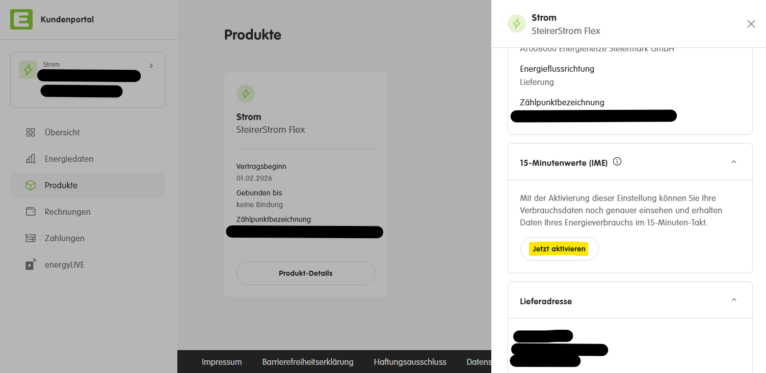 Die Aktivierung kann über das Kundenportal der Energie Steiermark erfolgen: