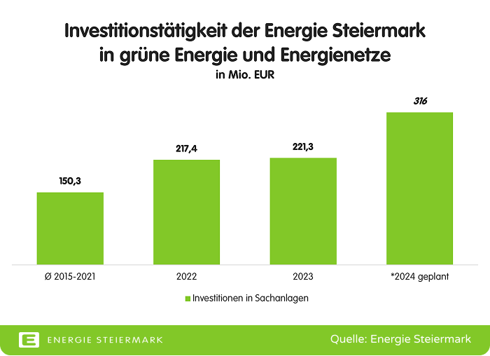 Von Seitwärtsbewegungen bei den jährlichen Investitionen ist bei der Energie Steiermark keine Rede mehr. In den vergangenen Jahren wurden die jährlichen Investitionssummen von durchschnittlich rund 150 Mio. Euro in den Jahren 2015-2021 stetig stark erhöht. Im aktuellen Geschäftsjahr 2024 plant die Energie Steiermark so viel wie noch nie in den